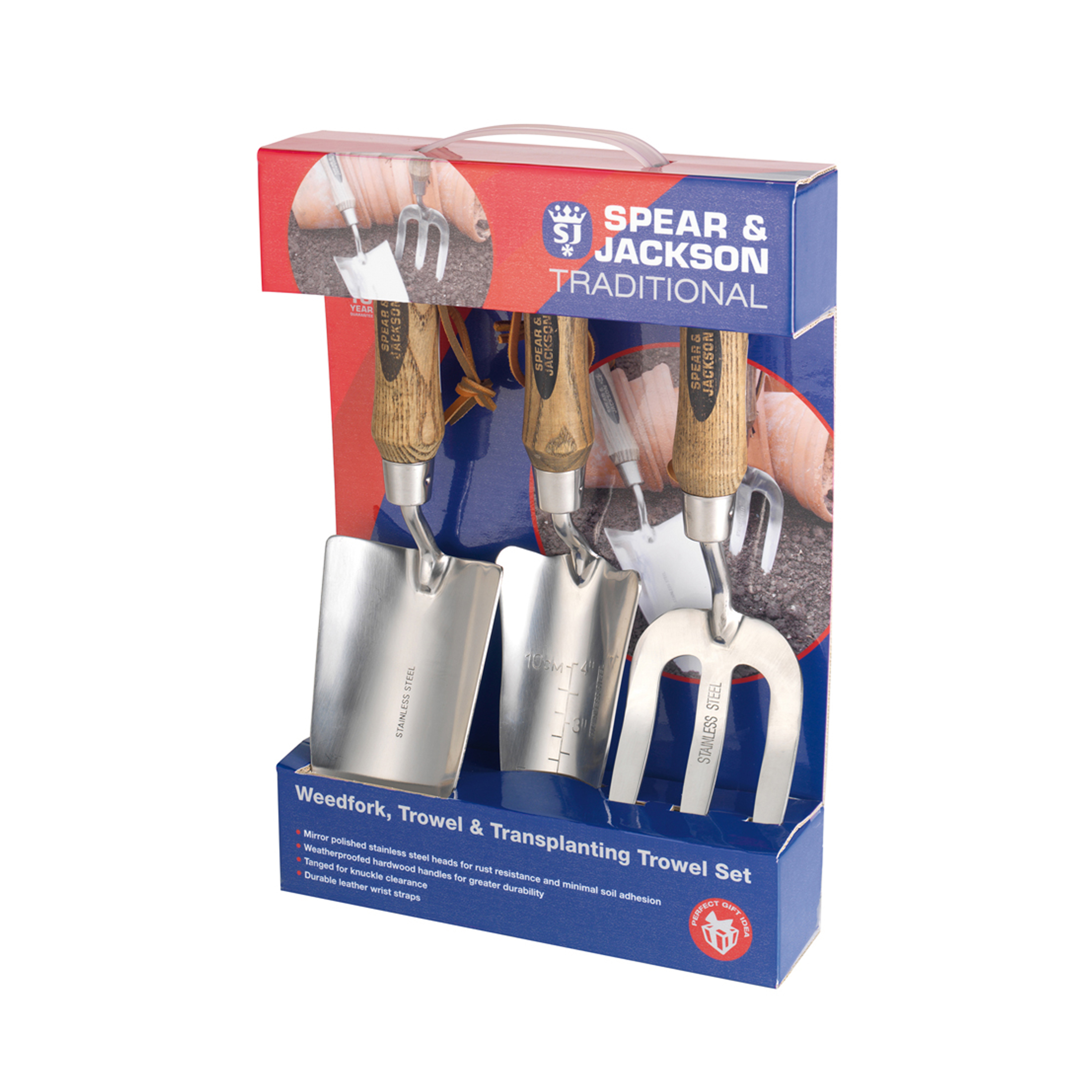 Traditional Stainless Trowel, Weed Fork and Transplanting Trowel Set